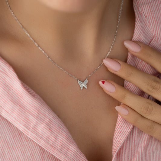 0.35 TCW Round Lab Grown Diamond Butterfly Pendant Necklace